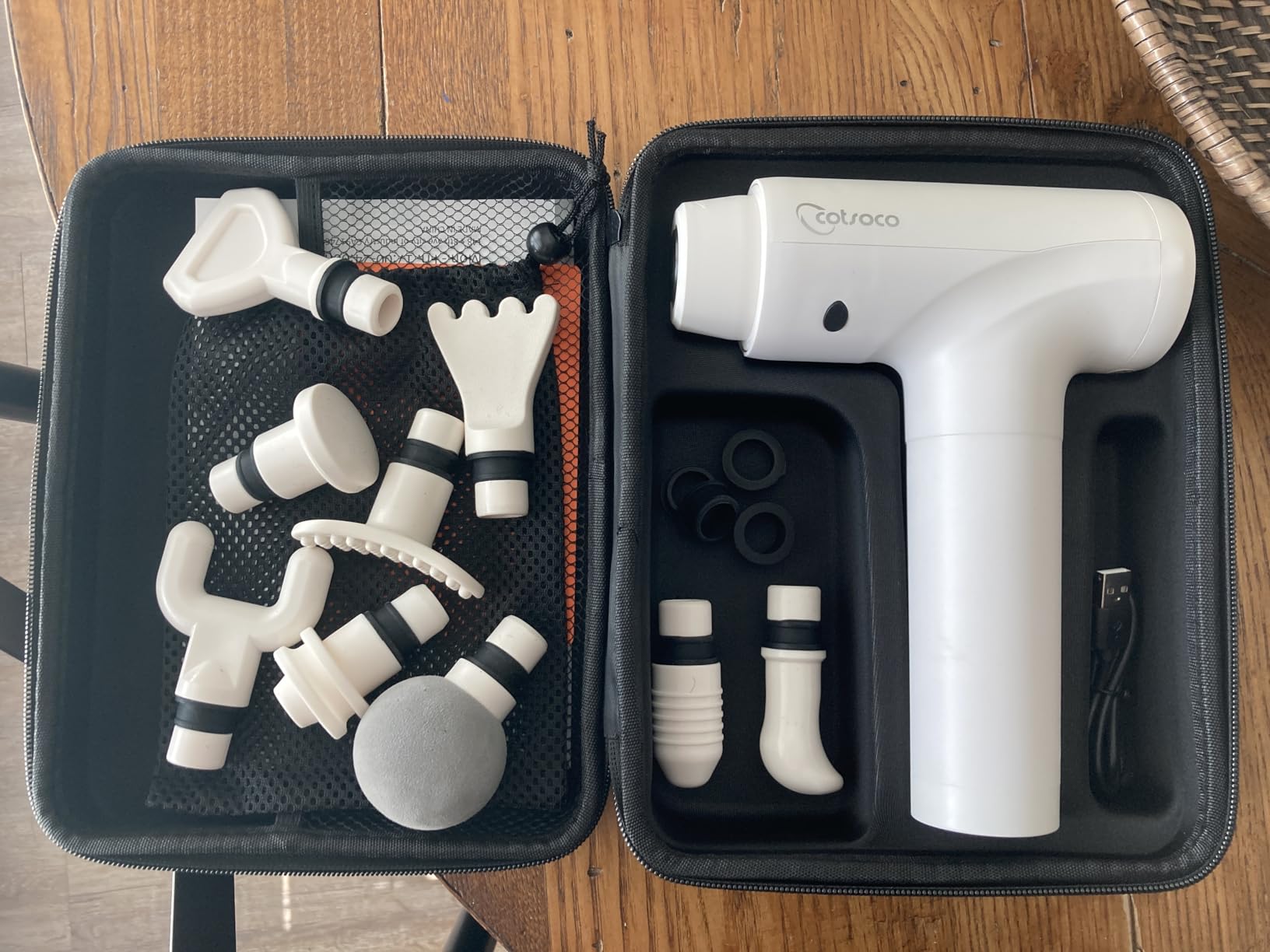 Comes with many heads. The flat one is my favorite for legs and lower back.